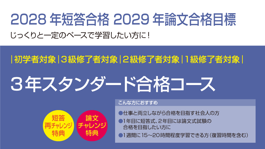 2028年短答・2029年論文合格目標 3年スタンダード合格コース概要