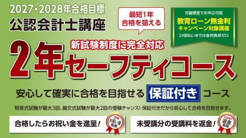 2026年6月までの簿記2級(ネット試験含む)、2026年11月までの簿記1級、2027年5月から2028年8月の短答式・論文式試験に合格された方には、「合格お祝い金」を進呈いたします。金額等の詳細は、こちらをご覧ください。