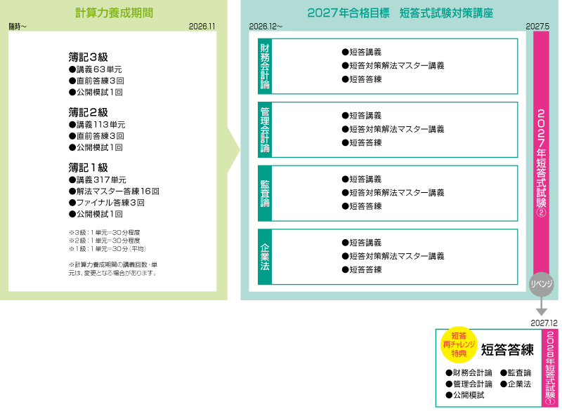 2027年5月短答合格目標 ストレート春短答合格コース カリキュラム