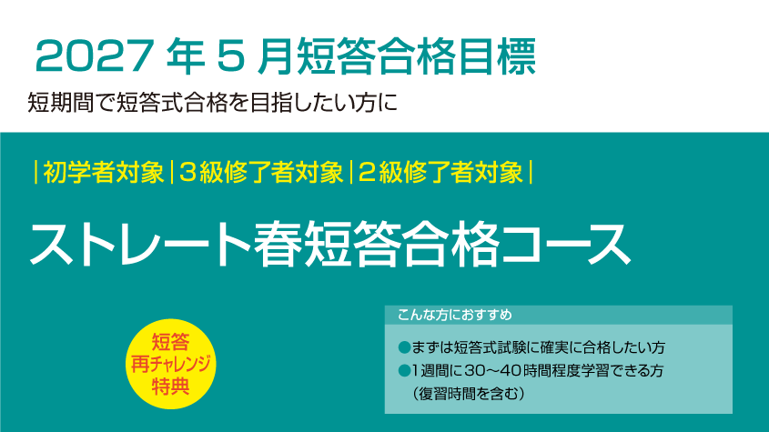 2027年5月短答合格目標 ストレート春短答合格コース