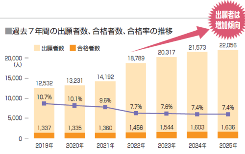 ■過去7年間の出願者数、合格者数、合格率の推移