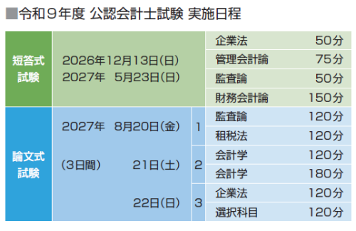 ■令和8年度(2026年) 公認会計士試験 実施日程