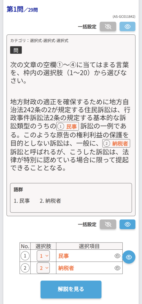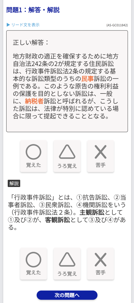 「詳細」ボタンを押すと、それぞれの問題の解説画面が表示されます。