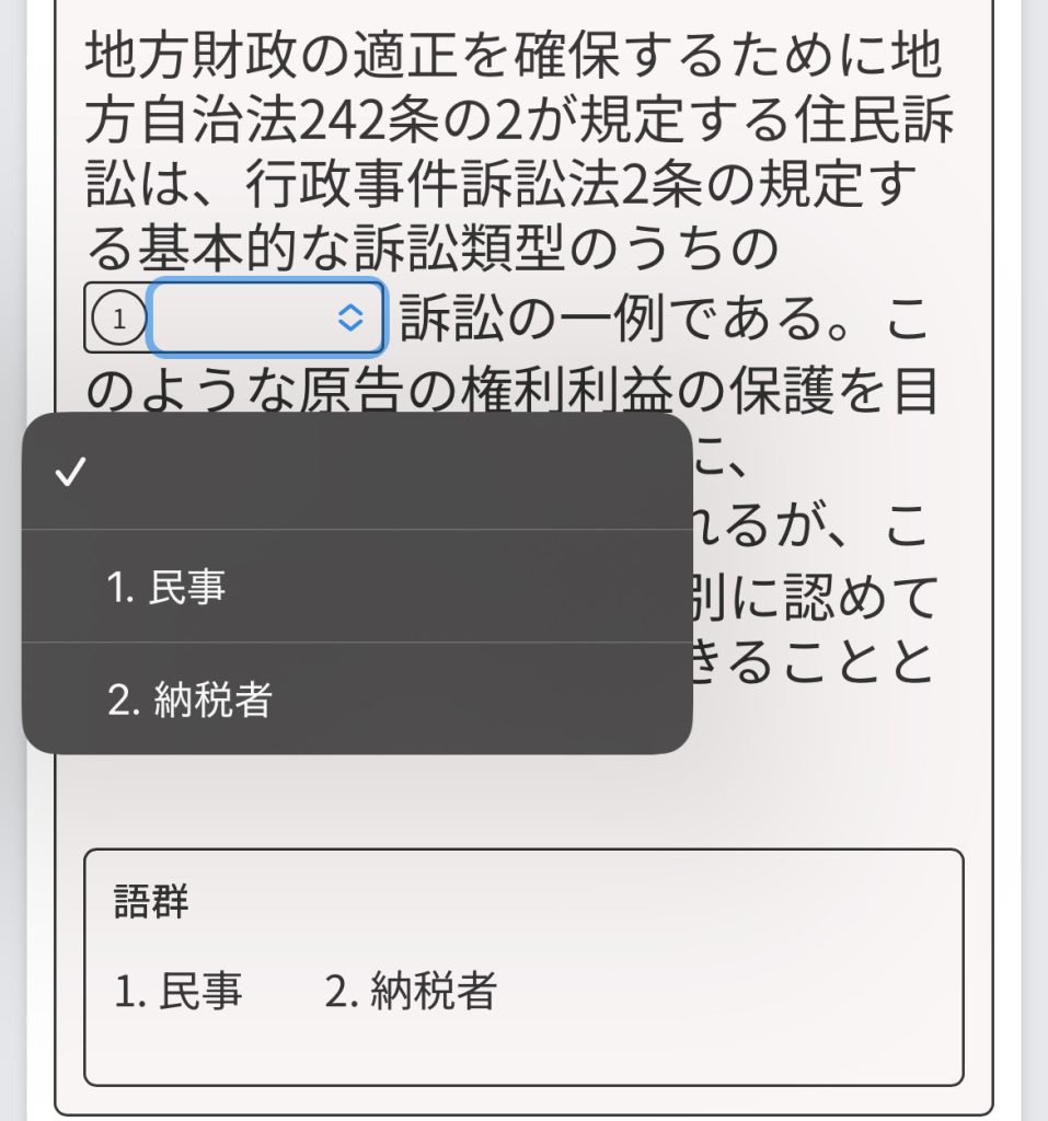 〇×問題や、2から5個の選択肢から1つを選ぶ形式の問題を解くことができます。詳細は こちら をご覧ください。