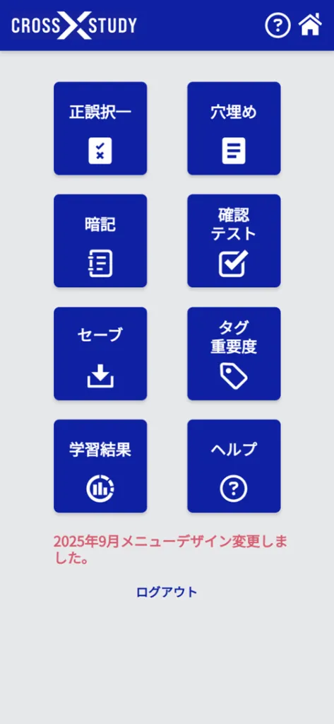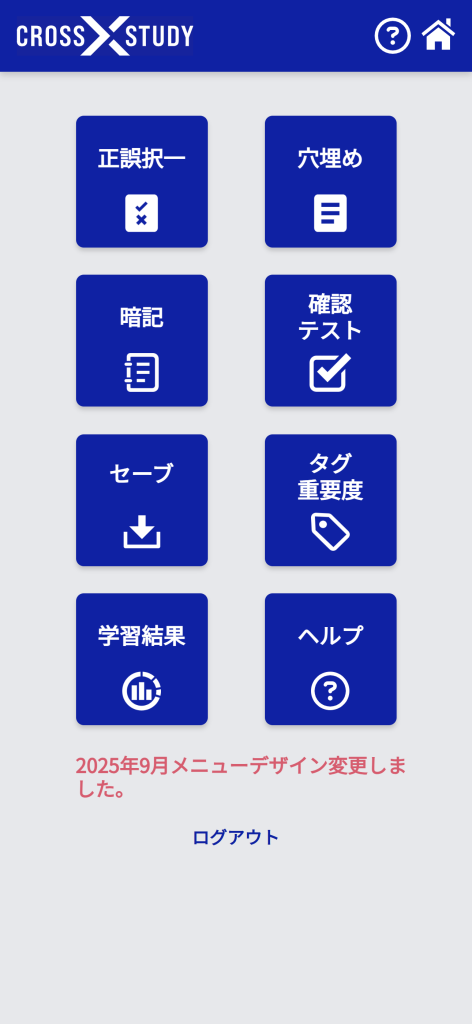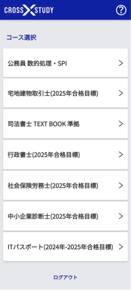 CROSS STUDYのロゴマークを押すと、この画面に戻ります。