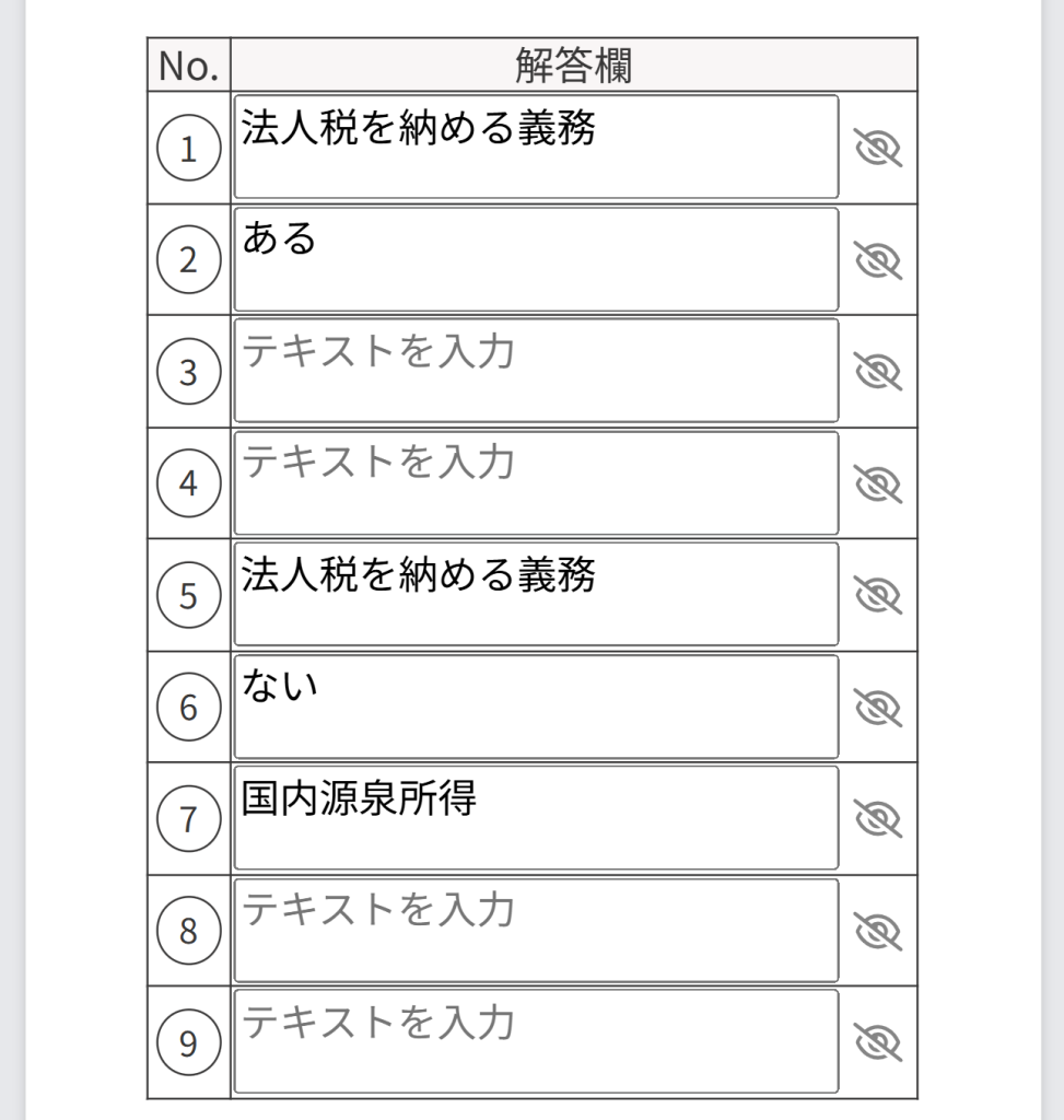 語群から解答を選択する問題や、記述式の問題を解くことができます。詳細は こちら をご覧ください。