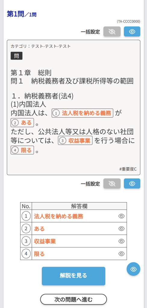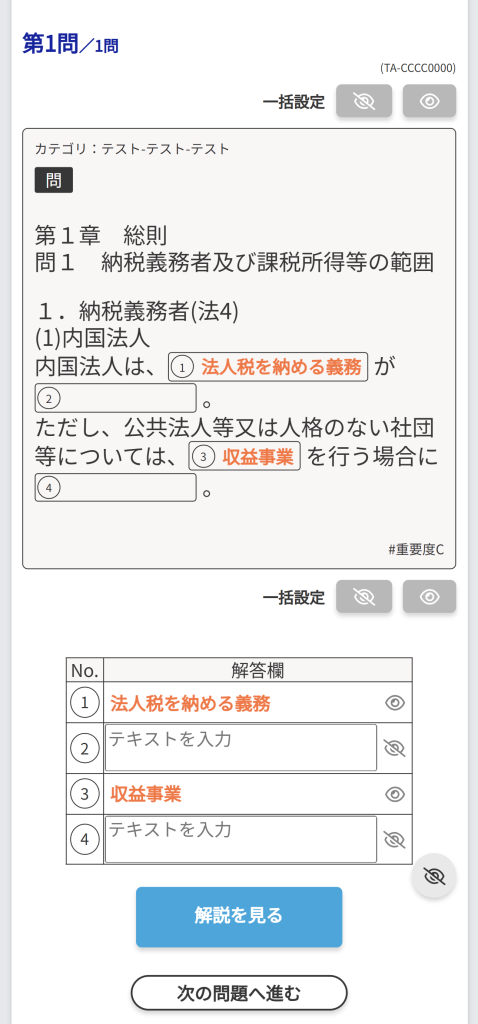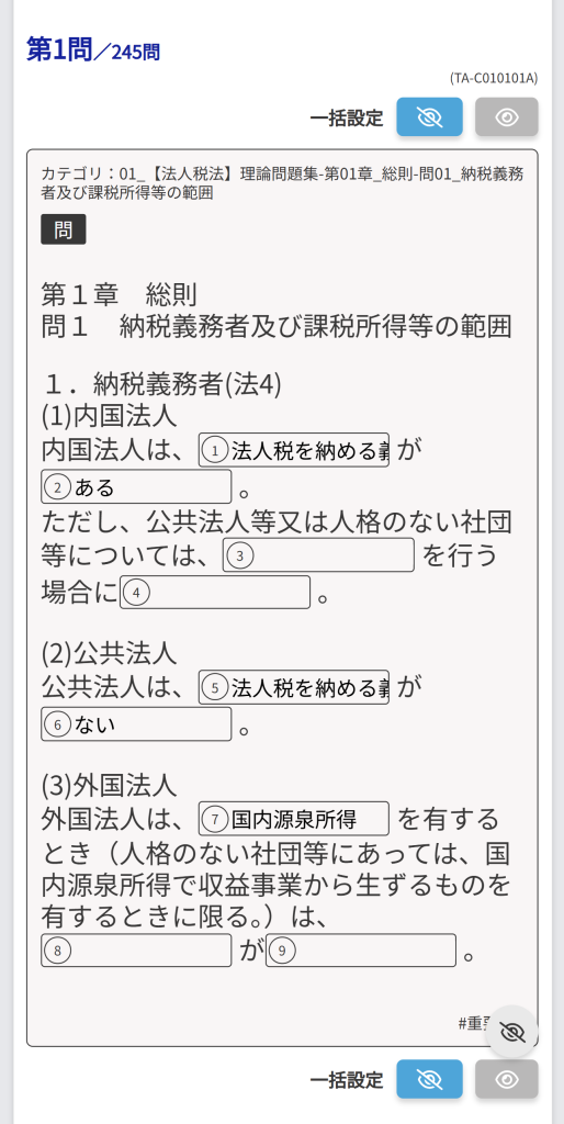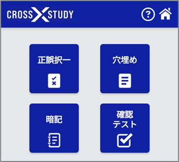 - CROSS STUDYで問題を解く(正誤/択一式問題・穴埋め問題)