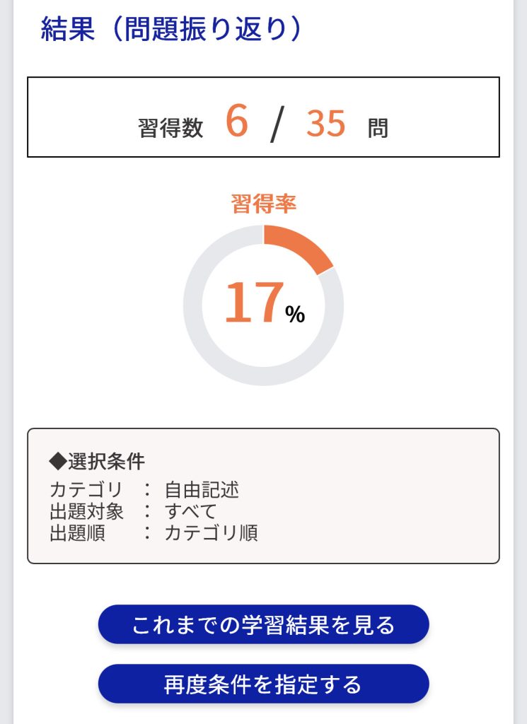 これまでの学習結果を確認できます。詳細は こちら をご覧ください。