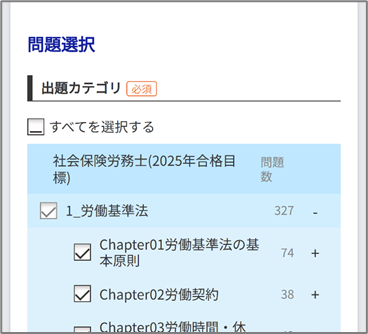 ②出題カテゴリとして「すべてを選択する」のチェックを入れます。