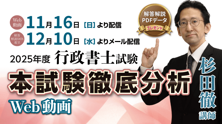 2024年度行政書士試験の徹底的な分析および解説を収録した『本試験分析会』を動画で配信します。