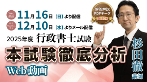 2025年行政書士試験の当日、杉田徹講師による本試験分析動画(速報版)を無料配信いたします。登録等は必要ありませんので、すぐにご覧になれます。