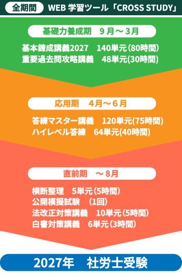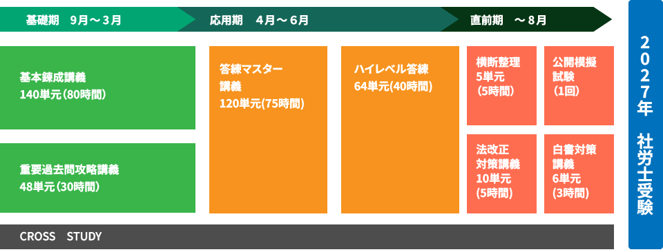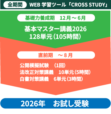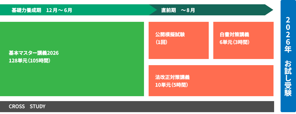 2026年3月以降に2027年度試験合格を本命にしつつ、2026年度試験をお試し受験可能なコース。