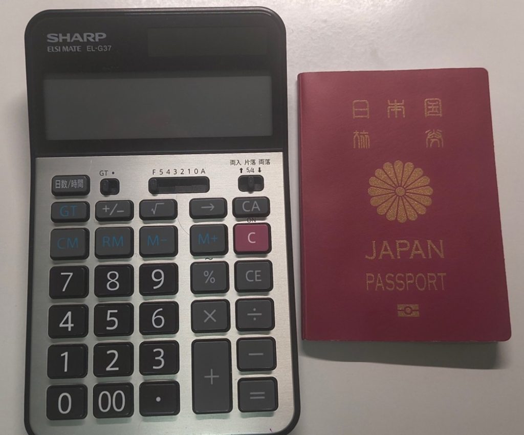 私はSHARPの電卓とパスポートを準備しました。