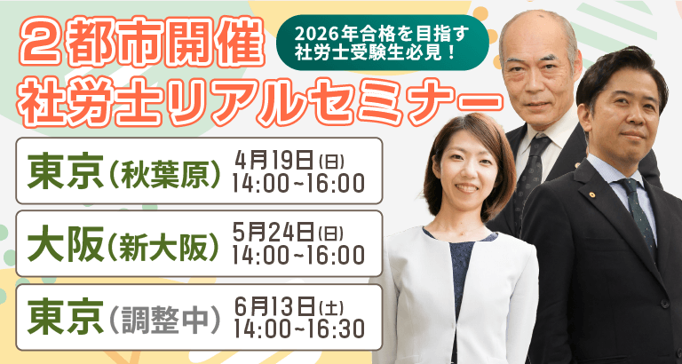 社労士合格へのポイントや勉強法、実際の講義など、社労士学習に役立つコンテンツが満載のセミナーとなっております!