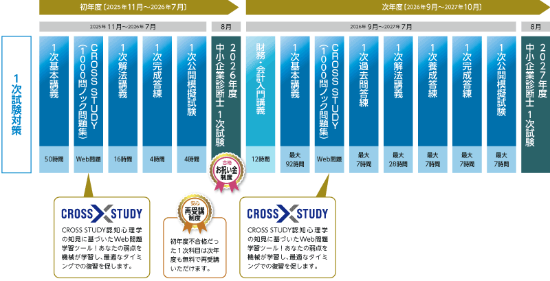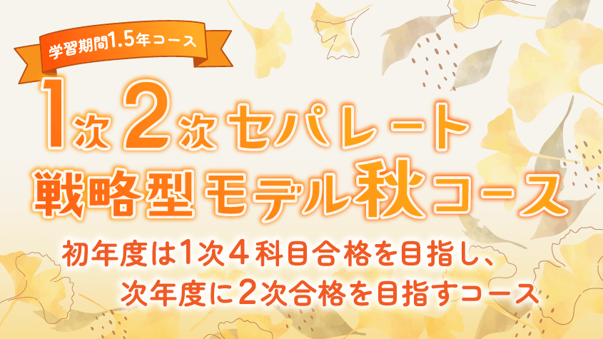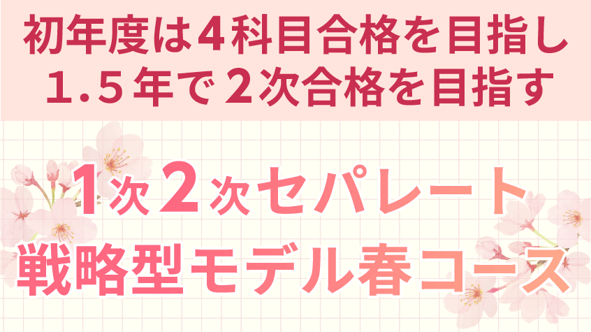 初年度は1次2~4科目合格を目指し、次年度に2次合格を目指すコース!