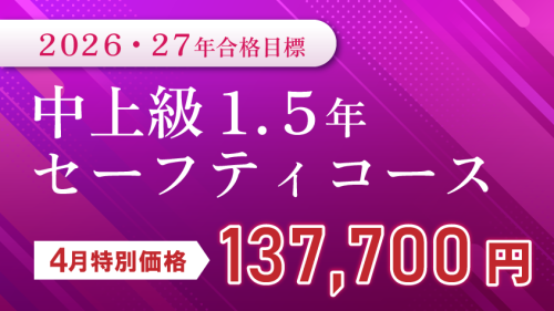 本試験レベルの実戦力を習得したい方にオススメ。2026年合格を目指しつつ、2027年試験対策まで備えた経験者向けセーフティコース。 -