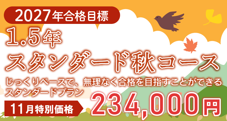 | 2027年合格目標合格ルート1.5年スタンダード秋コースWeb通信 | |
