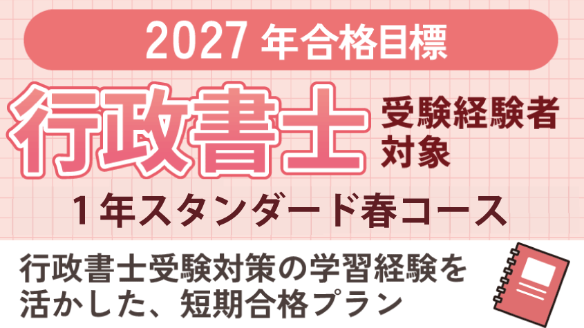 | 2027年合格目標行政書士受験経験者対象 1年スタンダード春コース | |
