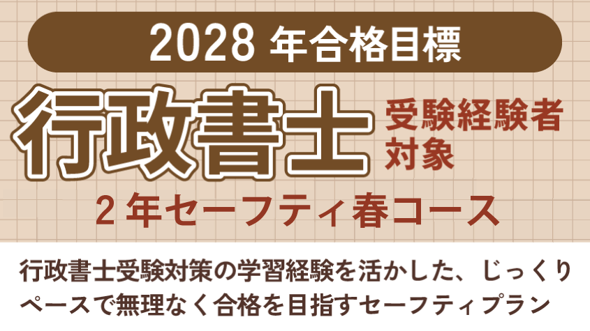 | 2028年合格目標行政書士受験経験者対象 2年セーフティ春コース | |