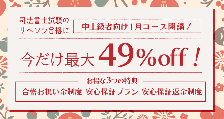 令和7年度司法書士試験(筆記試験)の択一式問題で基準点を突破された方に、対象コースの受講料が割引となる特別クーポンを進呈いたします!