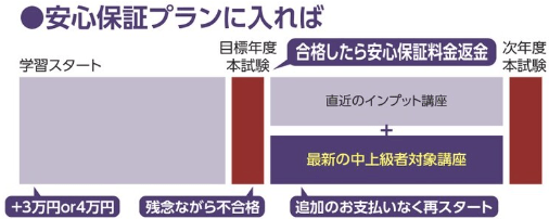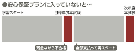 合格目標年の本試験が万が一の結果となってしまった場合、再度、講座を受講するために高額な受講料を負担しなければならなくなります。