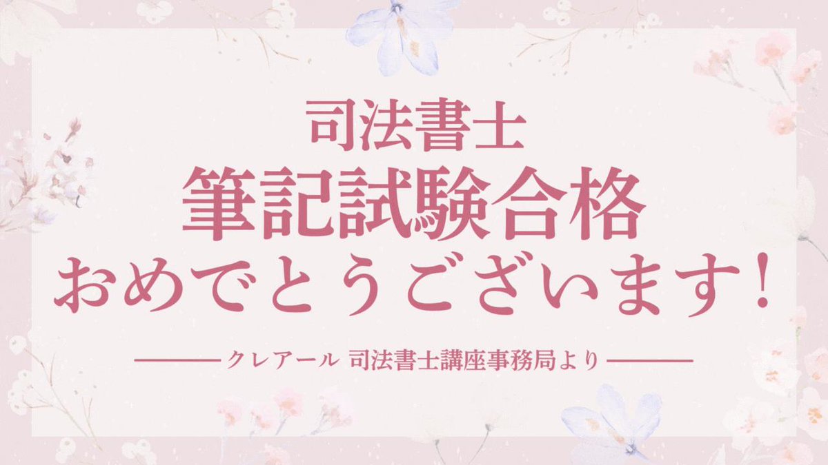 - 令和7年度司法書士試験(筆記試験)に合格されたクレアール司法書士講座受講生