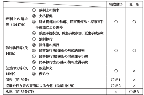 ※1 催告によって時効の完成が猶予されている間にされた再度の催告は、時効の完成猶予の効力を有しない(民150条2項)。また、催告によって時効の完成が猶予されている間に、権利についての協議を行う旨の合意が書面でされた場合であっても、当該合意は時効の完成猶予の効力を有しない(民151条3項前段)。