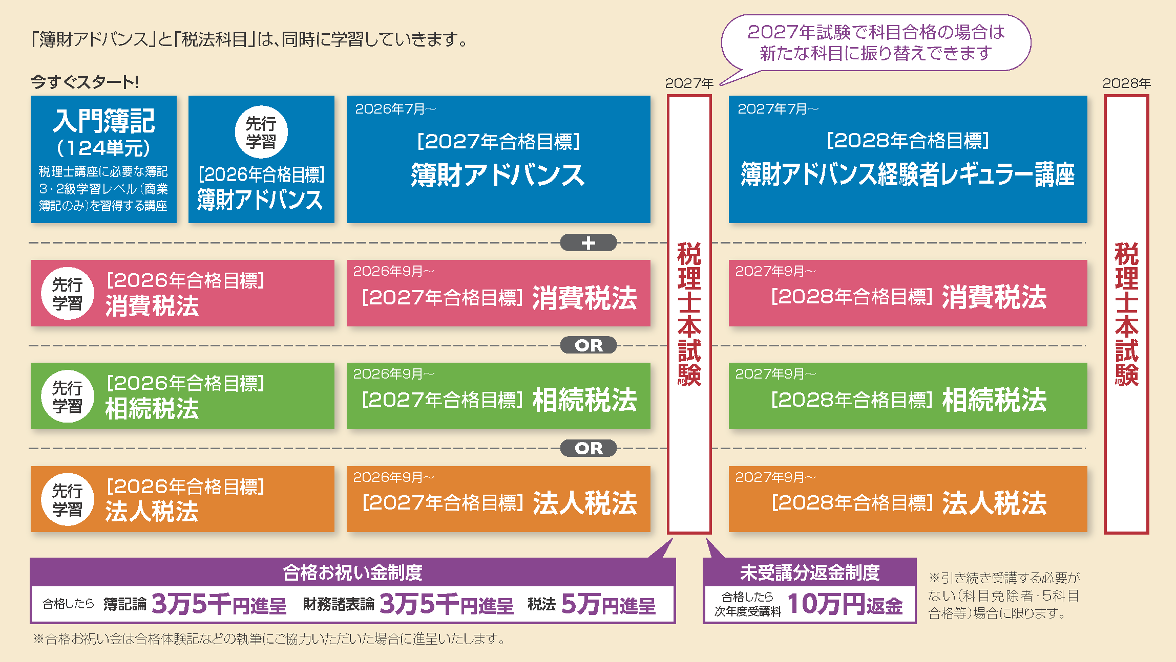 | 2027・2028年合格目標講座 1年3科目合格セーフティコース【簿財+相続税】 Web通信 |