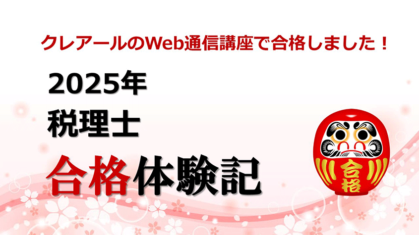 2回目の受験での合格ですが、1回目は勉強を開始してから半年程度しか経っていなかったため、全く歯が立ちませんでした。特に時間が足りないことがわかりましたので、答練や公開模試などで時間内に問題を解き切れるように時間配分を意識しました。取り組んだのはクレアールの教材のみです。これだけで充分合格できる内容であると思います。